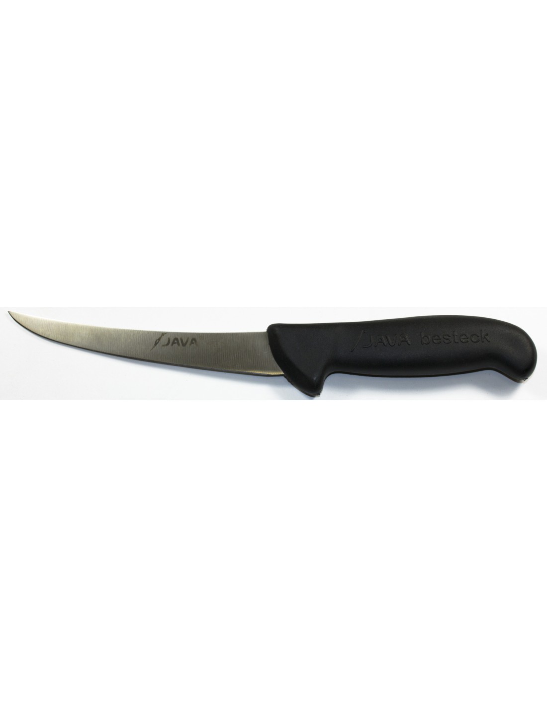 REF 608CF.CUCHILLO DESHUESADOR HOJA CURVA FLEXIBLE de 15cm de hoja.Hoja flexible y curvada para deshuesar ternera.Especialmente dirigido a la industria cárnica y establecimientos minoritarios del ramo.Al tener la hoja curvada permite trabajar de manera ergonómica adaptándose a la posición vertical de la carne a cortar. Su hoja flexible le permite adaptarse a las partes de la carne que se desea cortar y limpiar.